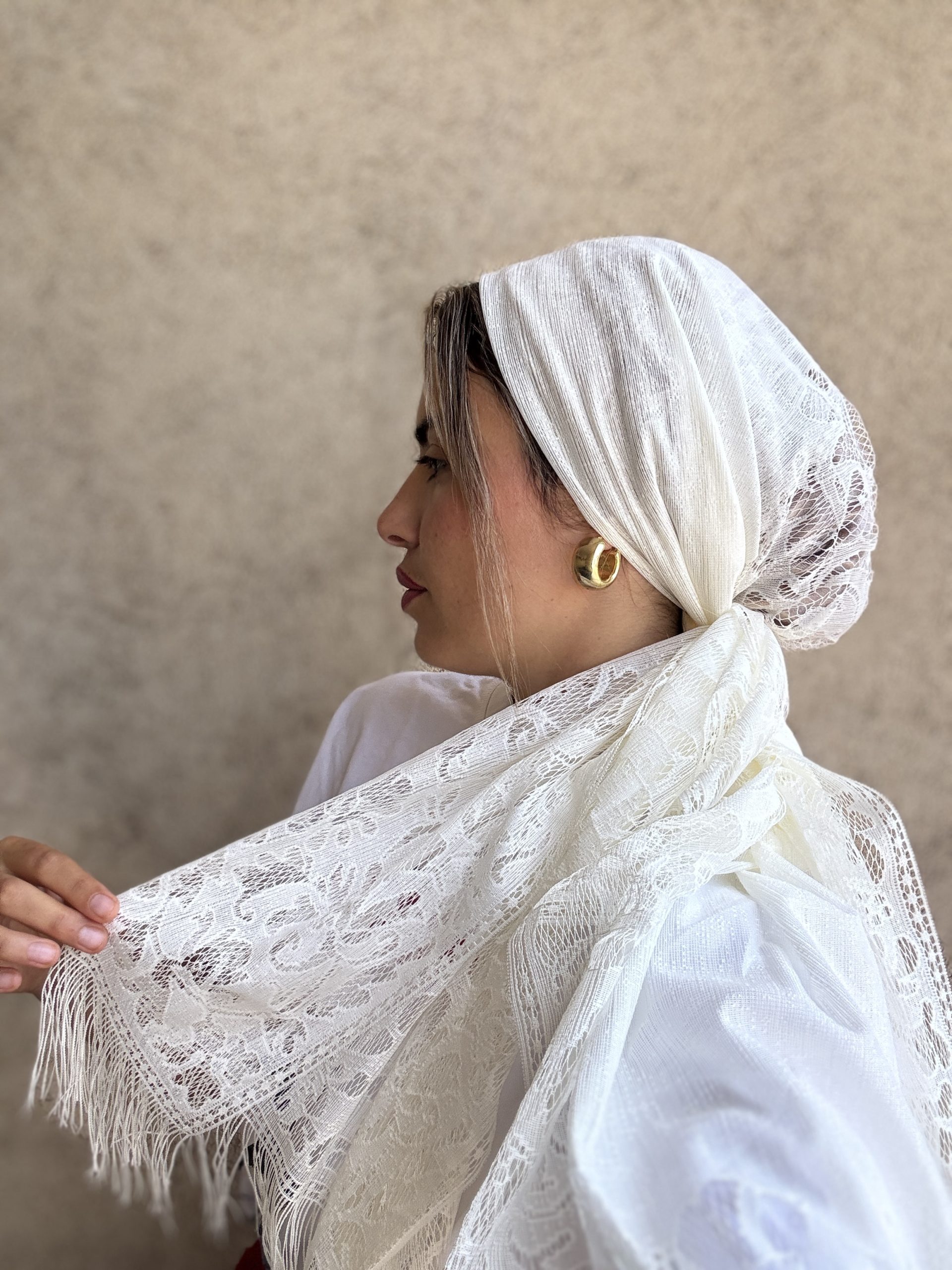 מטפחת תחרה שמנת